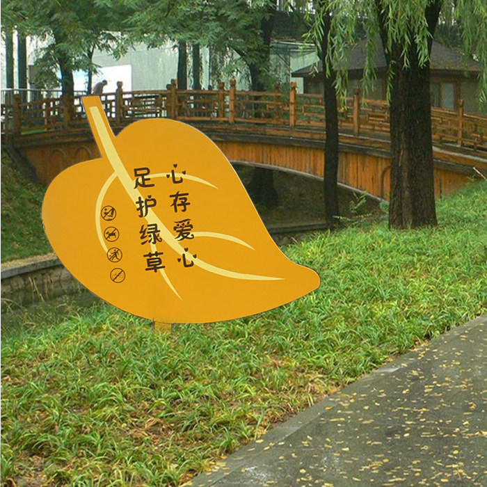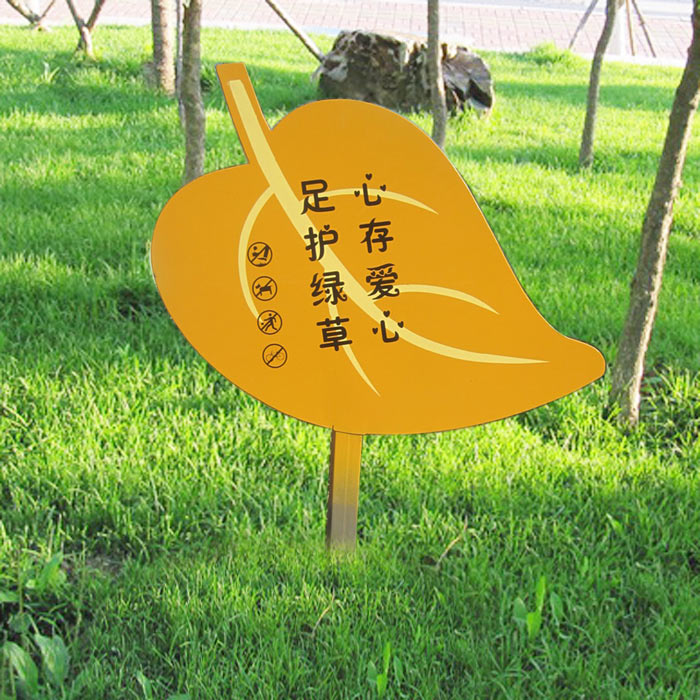 草牌一般造型多樣,美觀可愛,有動物造型,有花草造型,還有各種設(shè)計元素造型等。色彩多數(shù)也比較艷麗,為了能在花草叢中凸顯出來,顏色多為暖色為主?;蚋鶕?jù)該單位來的標(biāo)準(zhǔn)色來決定色彩。