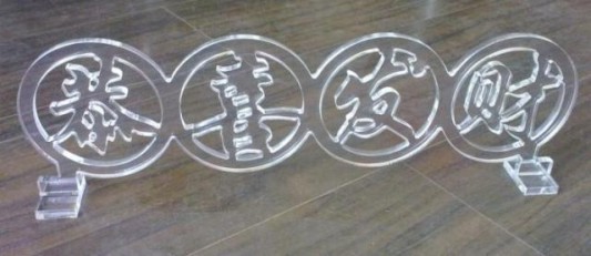 水晶字是用化學(xué)水將透明有機(jī)玻璃(亞克力)跟有色有機(jī)片粘合起來組合而成。成型時(shí)可以將透明有機(jī)玻璃和有色有機(jī)片分開來雕刻,也可先用化學(xué)水粘合后再一起雕刻。由燈光照射看起來非常好看,它可以用在室內(nèi)和室外,不怕日曬雨淋。是一種性價(jià)比較高的高檔字。