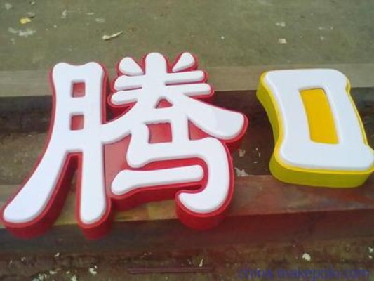 吸塑字由亞克力吸塑面、發(fā)光字箱體、及LED光源三部分組成:使用密度板,通過雕刻機(jī)將字形狀切割下來后,放于吸塑機(jī)平臺(tái),將加熱軟化的亞克力板覆蓋于字形之上,板子四周與平臺(tái)用膠帶封住,使軟化的亞克力板完全吸附于密度板的字形,凸現(xiàn)字的形狀,冷卻后,將字輪廓裁切、裁邊,字面完成。
